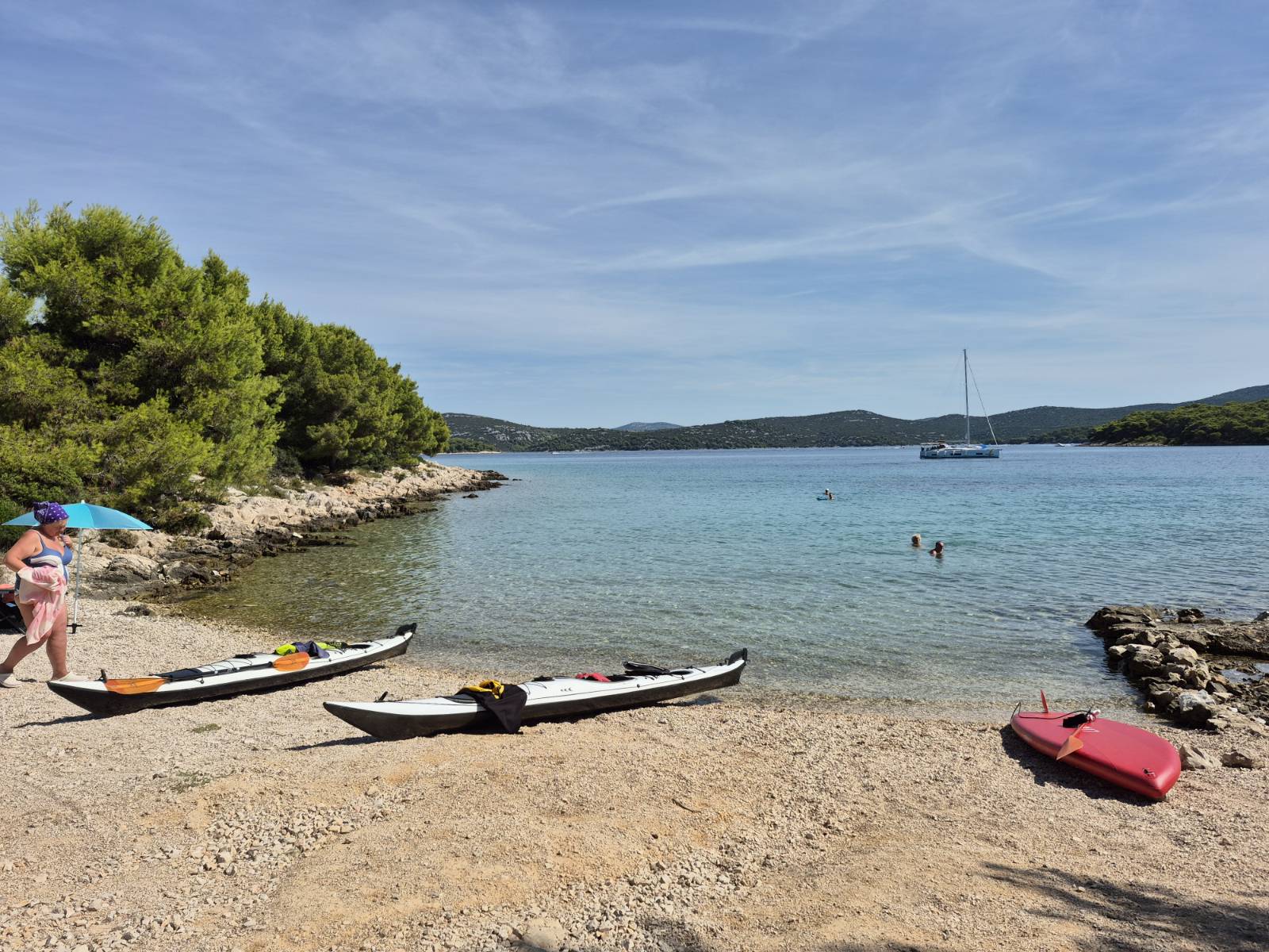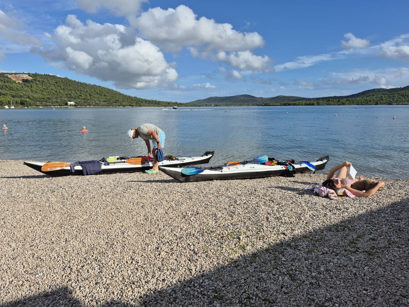 Die erste Tour war am Westufer in Richtung Norden und da konnten wir vor allem die Kajaks gut austesten. Am 2. Tag gab es dann eine kleine Rundreise, runter in den Süden bis fast zum Fährhafen, dann nach Plavnik rüber und beim Leuchturm