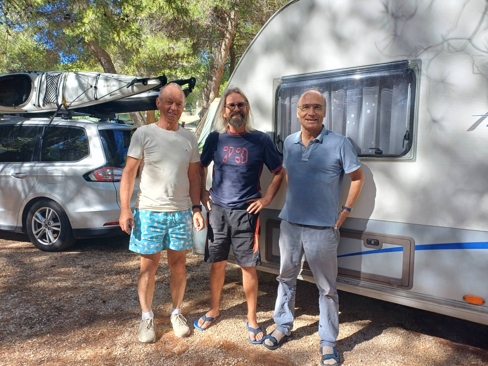 Entsprechend unserem Plan fuhren wir also täglich zu unserem Campingplatz zurück. Und dort hatten wir einen schattigen Stellplatz für Gantners Wohnwagen und mein geräumiges Luftzelt, unsere Fahrräder, Küsten-Radwege für unsere liebe Evi, einen Sandstrand, eine Strandbar, eine gute Taverne, und vorallem unsere Küche und unsere Kochkünste. Und das alles verlieh unserer Woche Urlaubscharakter. Und so wollten wir es auch haben und so wollen wir es auch nächstes Jahr wieder machen.